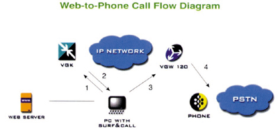 VocalTec公司的網(wǎng)上呼叫(Surf&Call)網(wǎng)絡(luò)客戶(hù)軟件5.0(Web Client5.0),可提供語(yǔ)音增值電子商務(wù)服務(wù)以及通過(guò)IP網(wǎng)的網(wǎng)絡(luò)到電話呼叫業(yè)務(wù)。Surf&Call是一種面向基于互聯(lián)網(wǎng)電信應(yīng)用的獨(dú)特網(wǎng)絡(luò)軟件,可通過(guò)互聯(lián)網(wǎng)使任何網(wǎng)站與普通電話實(shí)現(xiàn)語(yǔ)音連接,是VocalTec整體架構(gòu)的一部分。Surf&Call為網(wǎng)頁(yè)提供一個(gè)按鈕,上網(wǎng)者單擊該按鈕,就可與座席通話。在大多數(shù)瀏覽器環(huán)境下,在瀏覽需要利用Surf&Call軟件的頁(yè)面時(shí),Surf&Call可自動(dòng)下載和安裝。