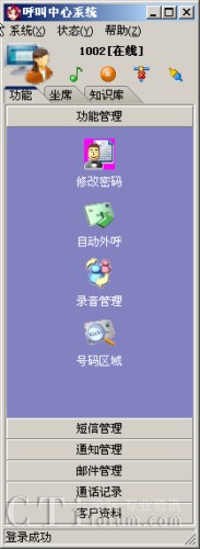 座席管理系統(tǒng)負(fù)責(zé)對(duì)座席人員進(jìn)行管理,包括人員登記、權(quán)限管理等內(nèi)容,可以據(jù)此對(duì)座席人員進(jìn)行服務(wù)監(jiān)督考核。
