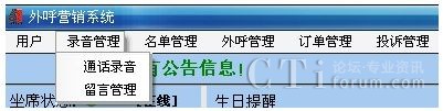 有錄音、監(jiān)聽(tīng)、發(fā)送傳真、接收傳真、語(yǔ)音識(shí)別(ASR)等功能,處理話(huà)路與人工坐席的連接、來(lái)話(huà)轉(zhuǎn)移、保留、坐席呼出等功能,用戶(hù)與人工坐席的通話(huà)過(guò)程可實(shí)現(xiàn)全程錄音。