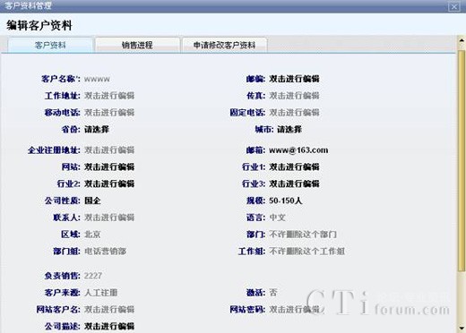 對新添加的客戶錄入客戶信息資料,包括客戶的名稱、郵箱等,為其建立起一個新的客戶關(guān)系,可以隨時找到該客戶的具體信息以及他的銷售情況,方便對客戶銷售進程有一個充分地實時跟蹤,并為之更好地服務(wù)。