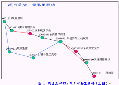 中國網(wǎng)通集團(tuán)的"中國網(wǎng)通集團(tuán)大客戶信息管理分析及一站服務(wù)系統(tǒng)"(以下簡稱網(wǎng)通總部CRM項(xiàng)目)的合同簽約儀式在這里舉行,合同總額約為人民幣3000萬元。而作為合同執(zhí)行方的是HOLLYCRM(合力金橋軟件)公司,在一個月前才從北京合力金橋系統(tǒng)集成公司拆分出來。HOLLYCRM的總裁曲道俊先生在拿到這份合同時輕輕松了一口氣,用艱苦卓絕、峰回路轉(zhuǎn)、跌宕起伏等等一系列字眼來形容這連續(xù)4個月的應(yīng)標(biāo)過程決不為過,畢竟所有的努力并沒有白費(fèi)。但曲道俊先生并沒有完全沉浸在這種商場角逐取勝的快樂當(dāng)中, 畢竟這么大的一個項(xiàng)目要由一個前身為事業(yè)部的公司來完全承擔(dān)實(shí)施畢竟不是一件容易的事, 他馬上整理了思路, 撥通了負(fù)責(zé)這個項(xiàng)目實(shí)施的項(xiàng)目經(jīng)理盧毅的電話:半小時后我們辦公室見。