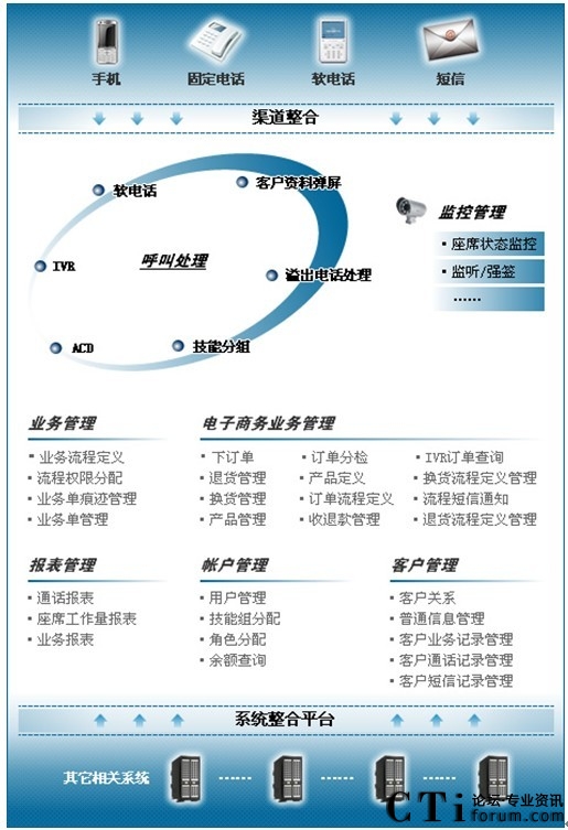 - 全面電子商務(wù)業(yè)務(wù)管理模塊,實(shí)現(xiàn)呼叫中心與業(yè)務(wù)的完美結(jié)合;