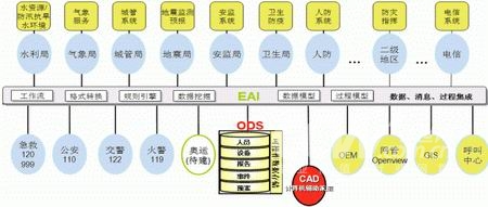 建立在ODS基礎(chǔ)上的ODS+EAI框架為整個(gè)公共安全應(yīng)急指揮系統(tǒng)提供基礎(chǔ)架構(gòu),通過該框架不僅可以交換并緩存數(shù)據(jù)信息,同時(shí)可以交換和記錄調(diào)度命令,通過數(shù)據(jù)采集構(gòu)建信息數(shù)據(jù)基礎(chǔ),記錄并歸檔事件處理過程,維護(hù)和利用預(yù)案處理過程。同時(shí)該框架也為我們建議的本地或遠(yuǎn)程OEM系統(tǒng)、甚至是移動的OEM系統(tǒng)提供有力的技術(shù)和數(shù)據(jù)支撐。