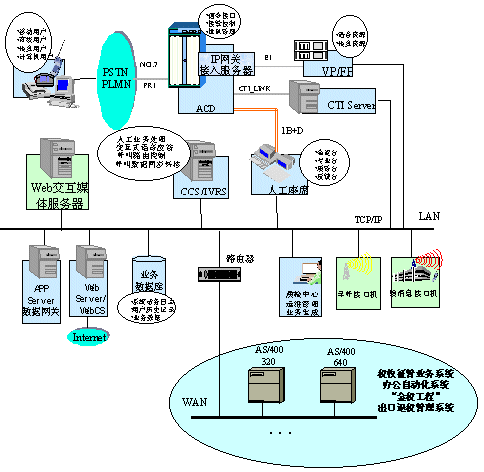 Media Integration- CMI )基礎之上的智能呼叫處理中心(Call Center),集程控交換技術、計算機技術、Internet技術、網絡技術和數(shù)據(jù)庫技術于一體,提供完整的稅務呼叫中心解決方案。CTI技術是綜合計算機技術與電信技術發(fā)展起來的技術,涵蓋了話音、傳真、圖象等各種電信媒體處理技術,應用領域也越來越廣泛。隨著技術的發(fā)展和市場的發(fā)展,CTI正演變成CMI。CMI技術將多種媒體集成到一個單一的構架中,華為INtess系統(tǒng)的設計充分體現(xiàn)了這種思想。