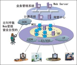 運營支撐層與視訊交換層可以兼容各個視訊終端生產(chǎn)廠家提供的滿足標準的終端,在視訊實現(xiàn)層為電信運營商的客戶提供多種方便的預約手段,并推出“主叫呼集”功能,使用戶能夠方便地自主召集各種視訊業(yè)務。“一卡多號”方便用戶付費、使用;全面的級連MCU主席控制能力使用戶能靈活操縱視訊業(yè)務的進行!爸鹘泻艏薄ⅰ耙豢ǘ嗵枴钡裙δ艿奶峁,使復雜的視訊業(yè)務真正成為電信運營商滿足大客戶、適應電信市場發(fā)展的“傻瓜化”業(yè)務。
