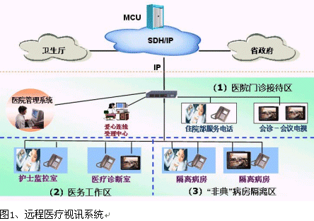 醫(yī)院通過視頻終端,對外推出遠(yuǎn)程醫(yī)療。一來可以避免病人因?yàn)楹ε碌结t(yī)院就診而耽誤病情,同時也防止了人們到醫(yī)院受到不必要的感染。同時醫(yī)院還可以設(shè)立非典咨詢、診斷中心,人們可以直接撥通咨詢中心的視頻終端進(jìn)行相關(guān)咨詢和對自己病情的確診。避免沒有病上醫(yī)院反而感染,也避免因?yàn)榕律厢t(yī)院而耽誤非典的治療。