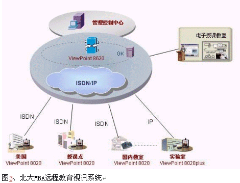 北京大學(xué)是我國首批被確定開展現(xiàn)代遠(yuǎn)程教育試點(diǎn)的院校之一,自1999年起至今,北京大學(xué)現(xiàn)代遠(yuǎn)程教育已經(jīng)遍布全國18個省市,2002年北大MBA作為國內(nèi)先進(jìn)的遠(yuǎn)程教育項(xiàng)目作為一項(xiàng)重要的國際間的教育交流項(xiàng)目,欲通過建設(shè)視訊系統(tǒng)和美國互通,進(jìn)行國際間的MBA遠(yuǎn)程教學(xué),同時可以進(jìn)行幾個分點(diǎn)之間的交互式視頻會議,提高學(xué)習(xí)效率。