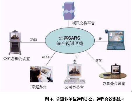 非典型肺炎不但對國家的經(jīng)濟(jì)造成了重大的損失,而且使得全社會對"非典"噤若寒蟬,大家對出差甚至外出都異常緊張。華為公司提供為個人家庭辦公、探親訪友的遠(yuǎn)程多媒體通信解決方案,大家在家里即可通過網(wǎng)絡(luò)和親朋好友"面對面"交流、在家中辦公。減少外出、遠(yuǎn)離人員眾多地區(qū),有效預(yù)防非典。對于有條件的用戶群可以推薦在現(xiàn)有寬帶線路或新增寬帶線路上購買軟件,即可實(shí)現(xiàn)親朋好友間的個人視頻通信;對于暫不具備寬帶條件的群體,如學(xué)生等,可以考慮在重點(diǎn)營業(yè)廳設(shè)立專門會議室或者視訊公話亭等,提供預(yù)約視頻服務(wù),滿足其溝通的需求。