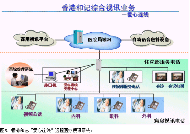 目前,香港和記電信已經(jīng)在香港的"瑪麗醫(yī)院"大廳、非典病房、以及其他安全場所安裝了個人視頻系統(tǒng),通過該系統(tǒng),病人和家屬就可以進(jìn)行"面對面"的交流,無論對于非典病人的康復(fù),還是保護(hù)病人家屬,防止非典傳染都有及其重要的作用。