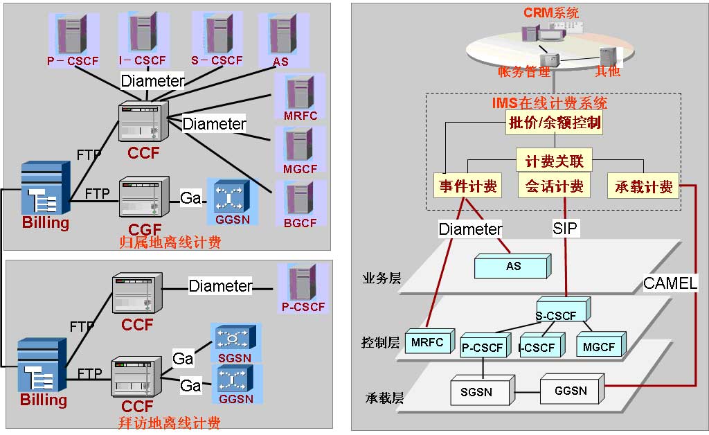 圖4左邊為離線計(jì)費(fèi)系統(tǒng)、右邊為在線計(jì)費(fèi)系統(tǒng)。