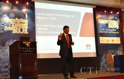 本次CCAS Symposium 2009的主題為“Translating talent into ROI”,著重探討在目前金融危機的陰霾下,如何通過精細(xì)化的運營管理,將人力資源或人才轉(zhuǎn)換成實實在在的投資回報率。華為資深專家Louis”做了”Leveraging