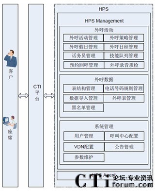 Server)提取HPS Management中導(dǎo)入的客戶數(shù)據(jù),自動(dòng)批量的執(zhí)行外呼任務(wù)?蛻艉敉ê螅炄際PS Agent 的話務(wù)員為客戶提供語(yǔ)音服務(wù)。