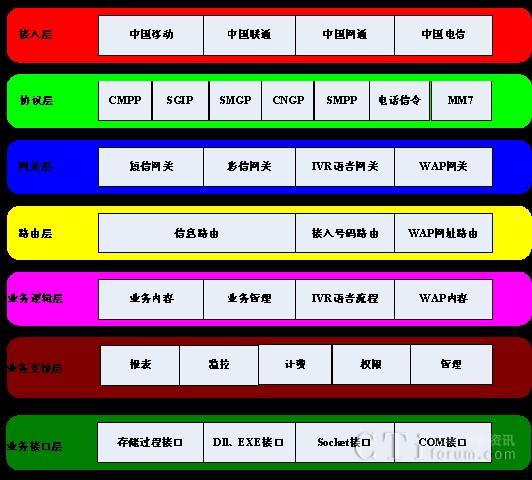移動(dòng)增值業(yè)務(wù)平臺是為各級運(yùn)營商、各種企業(yè)提供多種新型無線應(yīng)用的一整套增值業(yè)務(wù)平臺,基于平臺建立起具有豐富增值服務(wù)內(nèi)容的大規(guī)模業(yè)務(wù)處理的系統(tǒng)。移動(dòng)增值業(yè)務(wù)平臺是一整套綜合性的無線業(yè)務(wù)提供平臺,融合了短信、彩信、IVR以及WAP業(yè)務(wù),各業(yè)務(wù)間有機(jī)的銜接使其成為一個(gè)整體,對用戶提供無線全方位的服務(wù),提升整體價(jià)值。