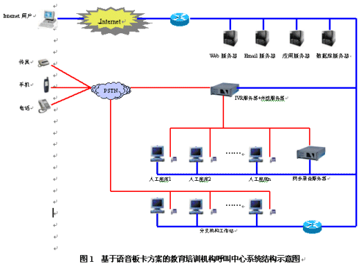 教育培訓(xùn)機(jī)構(gòu)呼叫中心系統(tǒng)是一個集合電話語音、計(jì)算機(jī)網(wǎng)絡(luò)、數(shù)據(jù)庫等技術(shù)的綜合信息服務(wù)平臺,主要由自動語音應(yīng)答系統(tǒng)、人工座席和數(shù)據(jù)庫系統(tǒng)三部分組成。