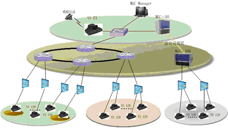一般來說,在省公司同時(shí)參與會議的人數(shù)較多,考慮配置比較大的系統(tǒng),由某一領(lǐng)導(dǎo)召集一些相關(guān)成員在此開會;在地市公司同時(shí)參與會議的人數(shù)較少,只是一些主要領(lǐng)導(dǎo)參加會議,考慮配置比較小的系統(tǒng);同時(shí),為了實(shí)現(xiàn)終端之間管理和傳送音頻、視頻和數(shù)據(jù),需要MCU來協(xié)調(diào)終端的工作,并與上級MCU相級聯(lián),擴(kuò)大會議的規(guī)模。另外,可以增加一套T.120服務(wù)器,該系統(tǒng)是利用多媒體技術(shù)幫助使用者對工作中的各種信息進(jìn)行處理,如共享數(shù)據(jù)、共享應(yīng)用程序、實(shí)現(xiàn)文件的雙向傳輸?shù)龋瑥亩鴺?gòu)造出一個(gè)多人共享的工作空間。以及增加一套VOD系統(tǒng),它集視頻采集、點(diǎn)播、廣播于一體,這樣就可以將視頻會議的內(nèi)容實(shí)時(shí)的錄制到本地,也可將一些培訓(xùn)資料放在視頻點(diǎn)播里,便于對貴公司員工進(jìn)行培訓(xùn),還能通過視頻廣播的功能,讓使用PC機(jī)的人員不在會議室,便可以通過瀏覽器實(shí)時(shí)的看到和聽到正在召開的會議。