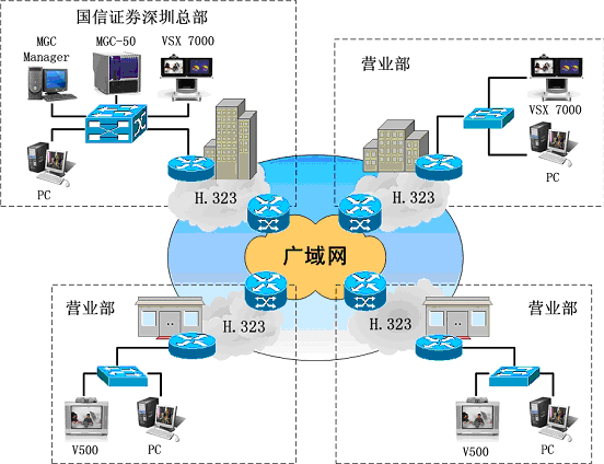 國信證券有限責任公司為全國性大型綜合類證券公司,總部在深圳,在全國二十一個城市擁有二十多家營業(yè)部及服務網(wǎng)點。隨著國信證券規(guī)模的不斷擴大和內(nèi)外交流的增加,公司領導希望借助視頻會議的高效、快捷等特點,提高管理效率、統(tǒng)一管理、降低企業(yè)的管理運作成本、減少公司的巨額通訊費用和差旅費用。