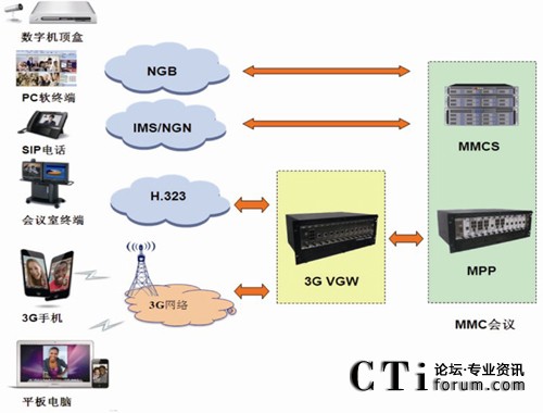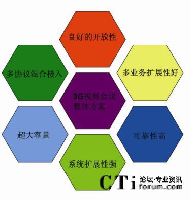 鑒于傳統視頻會議只能在固定地點、專用線路,通過專用設備召開語音和視頻會議的局限性。3G移動視頻會議解決方案實現了將會議拓展到整個互聯網和移動網絡,用戶隨時隨地可以使用3G手機和PC,通過互聯網、移動網絡即可便捷地接入到現有會議系統中,真正實現跨越地域、空間的全方位會議。