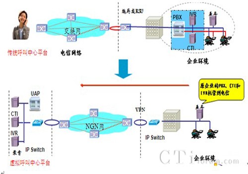 對于中小用戶來說,傳統(tǒng)呼叫中心的投入過大且不易轉(zhuǎn)移,而通過CCOD,中小用戶可以在較小的投資下享有與大企業(yè)一樣的呼叫中心服務(wù),同時由于CCOD本身虛擬的特性,也能滿足中小企業(yè)工作地點時常變遷的需求,可以方便的轉(zhuǎn)移。