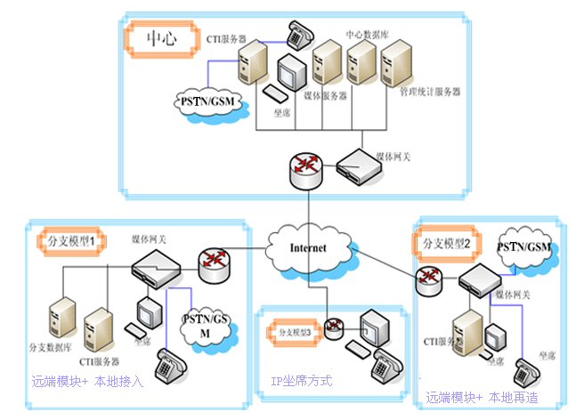 - 多種分布式、遠端坐席實現(xiàn)模式,滿足用戶不同分支機構(gòu)的業(yè)務(wù)和規(guī)模需要。