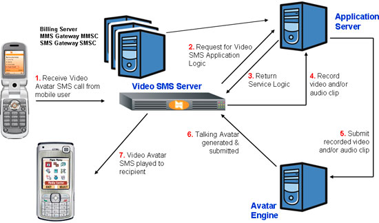 化身引擎 — 化身引擎的一個關(guān)鍵功能是接收來自應(yīng)用服務(wù)器的音頻片斷,并采用復(fù)雜的算法對語音消息和化身圖像的唇動進(jìn)行同步,處理后的結(jié)果就是一段“正在說話”的化身視頻。處理文件被發(fā)送回應(yīng)用服務(wù)器,在視頻SMS服務(wù)器存取這些視頻文件進(jìn)行播放之前,這些文件將被存放在應(yīng)用服務(wù)器上。