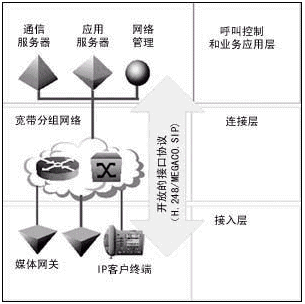 在接入層。各種媒體網(wǎng)關(guān)專職提供傳統(tǒng)終端的接入和與傳統(tǒng)網(wǎng)絡(luò)接口的功能,實現(xiàn)TDM與分組之間的轉(zhuǎn)換;新型的IP客戶終端則提供創(chuàng)新的、功能豐富的用戶界面。媒體網(wǎng)關(guān)和IP客戶終端還負責(zé)承載通道的建立功能,通過H.248/MEGACO、SIP等開放的接口協(xié)議在通信服務(wù)器和應(yīng)用服務(wù)器的控制和協(xié)調(diào)下為媒體流建立滿足服務(wù)質(zhì)量要求的承載通道。