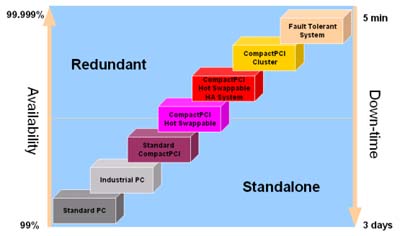 雖然CompactPCI的價格較VME和傳統(tǒng)工業(yè)計算機為高,但就整體考量而言,效價比仍是相當優(yōu)異的。就幾乎無法接受系統(tǒng)損壞停機的電信產(chǎn)業(yè)而言,通訊設備供貨商(TEM)如何規(guī)劃一個價格合理、性能穩(wěn)定的高可用性系統(tǒng)呢?