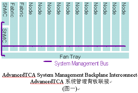 管理系統(tǒng)的信息傳輸和IPMI(智能平臺管理接口)指令集被用作對ATCA框架的管理,包括對電源的管理、電子鑰匙和機架內(nèi)溫度的監(jiān)控。系統(tǒng)管理是通過機框管理控制器(ShMC)執(zhí)行的。機框管理控制器(ShMC)負責完成對ACTA系統(tǒng)中的現(xiàn)場置換單元(Field
