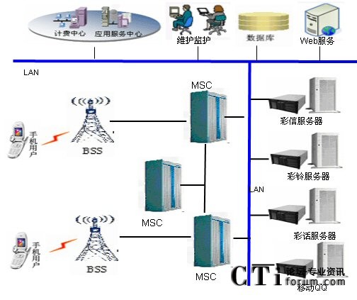 下圖是研祥智能科技股份有限公司采用CompactPCI計(jì)算機(jī)硬件平臺(tái)提供的電信增值業(yè)務(wù)解決方案從方框圖:電信用戶通過交換中心(MSC)向各個(gè)服務(wù)器(彩信、彩鈴、彩話、移動(dòng)QQ)提取信息,服務(wù)器由研祥CPCI產(chǎn)品構(gòu)成。主控業(yè)務(wù)邏輯運(yùn)行的功能實(shí)體,管理和控制平臺(tái)業(yè)務(wù)的運(yùn)行、對(duì)業(yè)務(wù)腳本進(jìn)行管理并對(duì)業(yè)務(wù)進(jìn)行監(jiān)控和統(tǒng)計(jì),同時(shí)計(jì)費(fèi)中心向用戶計(jì)費(fèi)。