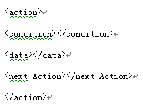 該節(jié)點的約束條件配置到節(jié)點中,當前的數據和業(yè)務邏輯配置到[data]節(jié)點中,邏輯的跳轉[next Acton]定義著。這樣業(yè)務,數據,業(yè)務關系就通過這種方式串接起來。客戶端處理程序按照[condition]定義好的條件處理當前[data]節(jié)點中的數據后得到一些新數據。