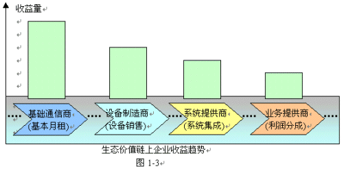 不管何種企業(yè), 各個(gè)企業(yè)都共同培育生態(tài)價(jià)值鏈, 準(zhǔn)確定位企業(yè)自己在生態(tài)鏈上的位置, 共分市場. 共享利潤. 圖1-3