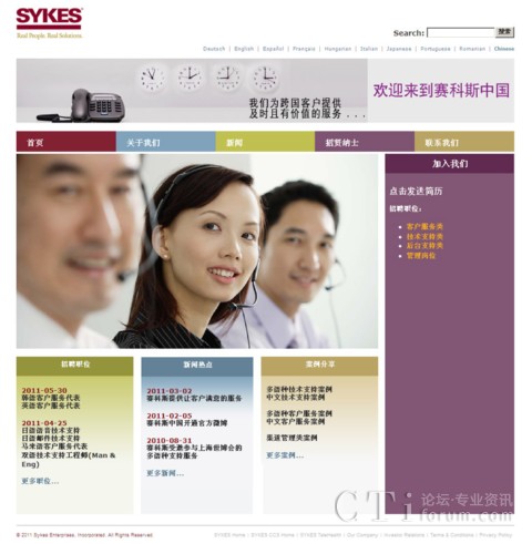 CTI論壇(ctiforum)8月8日消息(記者 潘婷婷): 為了更全方位地展現(xiàn)賽科斯中國(guó)的公司風(fēng)貌,公司網(wǎng)站(www.sykes.com.cn)經(jīng)改版后于8月4日全新登場(chǎng)。新網(wǎng)站在風(fēng)格、結(jié)構(gòu)、內(nèi)容等方面作了整體改進(jìn),使得整個(gè)網(wǎng)站的表現(xiàn)更清晰,界面更友好。