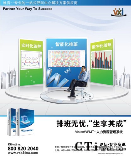 VisionWFM解決方案是為降低客戶服務(wù)中心的運營成本、提高客戶服務(wù)中心管理效率而設(shè)計的。我們可以通過系統(tǒng)軟件,科學(xué)地改進(jìn)運營策略和管理方法,使客戶服務(wù)中心在服務(wù)質(zhì)量、客戶滿意度和成本控制等績效指標(biāo)上都取得極大的提高。
