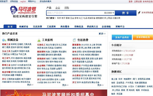 馬可波羅網(wǎng)隸屬北京搜斗士信息技術(shù)有限公司,成立于2006年,是全球最大的精確采購搜索引擎。馬可波羅按照格式化標準研發(fā)的多維精準搜索系統(tǒng),首創(chuàng)電子商務(wù)精確廣告營銷模式(B2B競價排名),僅用了不到5年時間,即在B2B電子商務(wù)精準采購搜索領(lǐng)域做到行業(yè)第一。