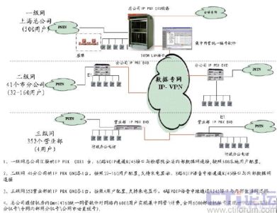 多個(gè)用戶,覆蓋1 個(gè)總公司、41 個(gè)分公司和352 個(gè)營(yíng)業(yè)部。在設(shè)計(jì)組網(wǎng)方案時(shí),阿爾卡特朗訊根據(jù)用戶的需求和實(shí)際情況,并充分考慮現(xiàn)有的數(shù)據(jù)網(wǎng)絡(luò)資源,提出采用星狀網(wǎng)絡(luò)組網(wǎng)結(jié)構(gòu)建設(shè)PBX