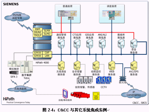 C&CC是西門子指揮控制中心全面解決方案的核心。C&CC以有線(HiPath 4000)/無線(模擬和數(shù)字集群)通訊平臺為信息采集和資源調(diào)度基礎(chǔ),系統(tǒng)核心模塊包括:融合多種業(yè)務(wù)的接處警工作流,面向地理信息對象的資源管理,面向事件的案情與錄音管理,基于預(yù)案的輔助決策支持,以及多種統(tǒng)計(jì)、查詢和報(bào)表生成工具等。在此基礎(chǔ)上,C&CC還提供豐富的接口,確保與技防報(bào)警、圖像/視頻監(jiān)控和GPS