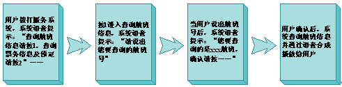 - 航班信息查詢是航空語音服務(wù)系統(tǒng)可加載的業(yè)務(wù)之一,還可以同時(shí)加載例如票務(wù)查詢與預(yù)定等業(yè)務(wù),在用戶通過語音預(yù)定后,可以選擇將票務(wù)信息通過短信或彩信發(fā)到手機(jī)上,從而實(shí)現(xiàn)電子訂票功能,減少了服務(wù)成本;