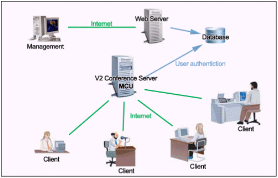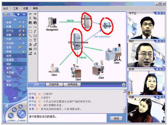 V2 Conference可以利用普通的PC機(jī)、標(biāo)準(zhǔn)的視頻攝像頭、耳機(jī)和麥克風(fēng),通過(guò)Internet或者是局域網(wǎng)進(jìn)行會(huì)議。與傳統(tǒng)的需要專用的服務(wù)器和硬件支持的視頻會(huì)議相比,企業(yè)無(wú)需投入高昂的成本,就可以實(shí)現(xiàn)高質(zhì)量的遠(yuǎn)程會(huì)議。同時(shí),V2 Conference還提供了遠(yuǎn)程會(huì)議管理的功能。