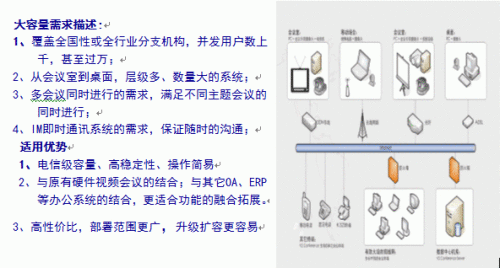 龐大的組織機(jī)構(gòu)和成千上萬的工作人員的數(shù)量,使工作信息經(jīng)過層層的傳達(dá)周轉(zhuǎn),一個(gè)文件和制度落實(shí)到最基層,往往要十天半個(gè)月。而大中型的組織機(jī)構(gòu)往往對(duì)日常溝通協(xié)作、培訓(xùn)、會(huì)議、統(tǒng)一調(diào)度需求非常頻繁,傳統(tǒng)的溝通協(xié)作模式耗費(fèi)大量人力物力和時(shí)間,不僅使溝通速度隨之降慢、效率放緩,更使組織機(jī)構(gòu)的會(huì)議培訓(xùn)和差旅費(fèi)用成本成為企業(yè)節(jié)能增效的阻礙。而傳統(tǒng)電話會(huì)議和硬件視頻會(huì)議產(chǎn)品因其高投入、難維護(hù)的缺陷比使人們?cè)絹碓絻A向于選擇大容量、高穩(wěn)定性、協(xié)同性強(qiáng)、高性價(jià)比的軟件視頻會(huì)議系統(tǒng)。