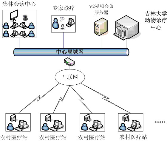 遠程醫(yī)療會診要求對圖文共享,幻燈片存儲發(fā)送,交互式電子白板注釋等更豐富的多媒體數(shù)據(jù)功能。對音、視頻質(zhì)量和通信的可靠性、穩(wěn)定性的要求較高,尤其是用于遠程會診時,對視頻圖像的質(zhì)量要求更高。而且農(nóng)村當?shù)氐木W(wǎng)絡(luò)環(huán)境相對復雜,網(wǎng)絡(luò)傳輸速度較低。基于這些條件,吉林大學動物診療中心在選擇網(wǎng)絡(luò)視頻會議軟件產(chǎn)品時就將數(shù)據(jù)轉(zhuǎn)輸功能和網(wǎng)絡(luò)的適應(yīng)性作為考量的標準。V2