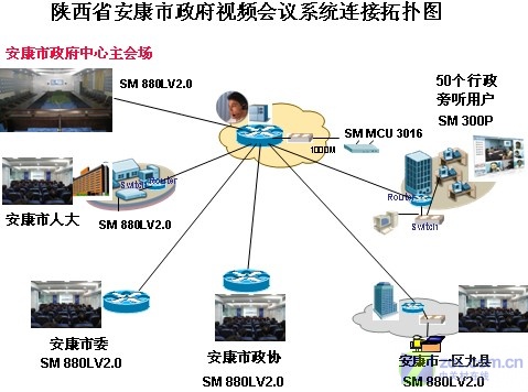 讓安康市政府尤為滿(mǎn)意的是,瑞福特的專(zhuān)業(yè)服務(wù)團(tuán)隊(duì),為其量身定制了最適合的解決方案:1臺(tái)MCU 3016視頻會(huì)議服務(wù)器放在機(jī)房;15臺(tái)視頻會(huì)議硬件終端SM880L部署在市中心會(huì)場(chǎng)以及各縣級(jí)政府會(huì)議室;50套軟件終端SM300安裝在PC和筆記本電腦上,輕松實(shí)現(xiàn)了安康市政府各項(xiàng)視頻會(huì)議應(yīng)用以及緊急事件的應(yīng)急指揮和溝通。