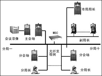 在每個分局和信息中心機房設置分會場,實現(xiàn)網(wǎng)絡視頻會議和遠程技術支持。分會場的會議終端設備選用VCON的會議室型柜式終端MediaConnect