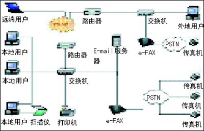 e-FAX網(wǎng)絡(luò)傳真系統(tǒng)示意圖