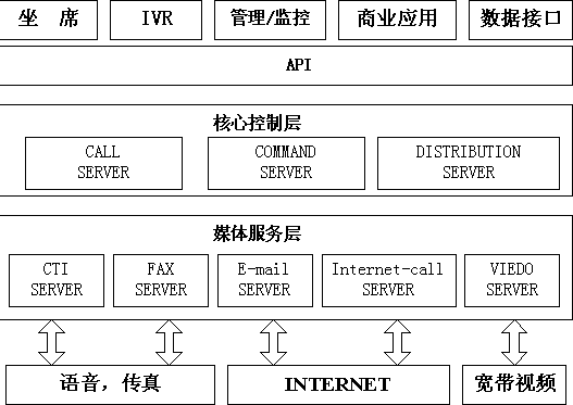 核心控制層用于對來自不同媒介的客戶進(jìn)行識別和路由,幫助企業(yè)最大限度地對每個連接加以利用,實(shí)現(xiàn)對所有客戶的全面交互管理,能夠?qū)M(jìn)入呼叫中心的語音呼叫、電子郵件、Web聯(lián)系和傳真通信等所有類型的多媒體交互進(jìn)行路由、通告和告警?梢詫Σ煌挠脩、不同的聯(lián)系方式進(jìn)行統(tǒng)一調(diào)度和個性化處理,并集中進(jìn)行管理、定制和用戶來訪信息的記錄。