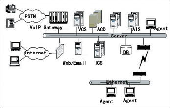 系統(tǒng)內(nèi)部所有媒體呼叫均采用IP數(shù)據(jù)包的格式由核心ACD Server統(tǒng)一處理,完成呼叫控制、路由處理、與呼叫同步的用戶數(shù)據(jù)管理及信息監(jiān)視。對于整個系統(tǒng)而言,雖然媒體接入方式各不相同,但路由策略卻可以完全一致。客戶可隨時隨地通過各種媒體與企業(yè)進(jìn)行緊密聯(lián)系。通過核心控制系統(tǒng),采用一致的路由方式,可以追蹤及管理所有媒體以及一切客服系統(tǒng)人力資源。