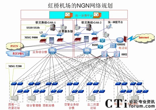 虹橋機(jī)場程控交換機(jī)新建和擴(kuò)容項目,實際上是一個包含多業(yè)務(wù)的項目和系統(tǒng),即以數(shù)據(jù)網(wǎng)絡(luò)作為基礎(chǔ)承載平臺,軟交換作為核心技術(shù),為用戶提供了豐富的業(yè)務(wù),很好地解決了話音、數(shù)據(jù)業(yè)務(wù)的融合。