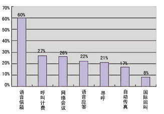 現(xiàn)在常用的辦公交流方式還是以傳統(tǒng)的電話(huà)、互聯(lián)網(wǎng)、電子郵件為主,而Voice Mail的方式卻比較少?梢钥闯觯赩oice Mail上還有很大的發(fā)展空間。