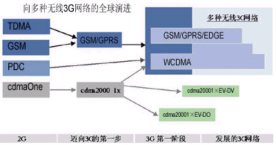 移動(dòng)多媒體服務(wù)需要網(wǎng)絡(luò)具有更高的速度和更大的容量。蘇敏芬詳細(xì)描述了網(wǎng)絡(luò)由2G向3G演進(jìn)的過程(如圖1)。據(jù)介紹,2G的技術(shù)基于多種標(biāo)準(zhǔn),包括TDMA、GSM、PDC和cdmaOne。其中,TDMA是美國采用最廣泛的2G技術(shù),但現(xiàn)在,美國的運(yùn)營商已經(jīng)越來越多地開始采用GSMc以及GPRS、EDGE等基于GSM的技術(shù);GSM存在于全球70%的運(yùn)營商網(wǎng)絡(luò),這種全球化技術(shù)不僅能夠給最終用戶提供服務(wù)、漫游以及通信質(zhì)量方面的很多好處,它還可以節(jié)省運(yùn)營商的投資,在從GSM向WCDMA演進(jìn)的過程中,也會(huì)為運(yùn)營商帶來諸多裨益。PDC是在日本被廣泛采用的一種技術(shù)標(biāo)準(zhǔn),但現(xiàn)在,WCDMA技術(shù)也正在逐漸被日本運(yùn)營商采用。cdmaOne(即IS-95)在韓國得到了比較多的應(yīng)用,韓國的運(yùn)營商面臨兩條發(fā)展道路,即從cdmaOne向WCDMA發(fā)展或向CDMA2000發(fā)展。中國主要采用GSM技術(shù),但也有小部分網(wǎng)絡(luò)采用了cdmaOne技術(shù)。