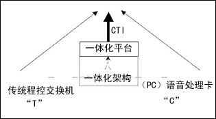 由系統(tǒng)集成商按照最終用戶的具體需求,將不同廠家的板卡集成到一個系統(tǒng)中,以實現(xiàn)計算機通過語音處理板卡,完成對用戶呼叫的控制。 |