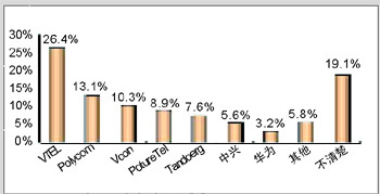 各品牌的認知度與其市場銷售情況息息相關。例如,VTEL是最早進入中國市場的視頻會議廠商,并在相當長的時期內(nèi)占據(jù)市場領先地位,取得顯著的品牌認知度是有其廣泛用戶基礎作為支撐的;Polycom雖然從1998年才開始進軍中國市場,但在基于IP的視頻會議系統(tǒng)的市場爭奪中取得較好的成績;PictureTel已經(jīng)被Polycom收購,品牌認知度也相對較低;而國內(nèi)品牌中興、華為剛剛起步,也很難達到較高的認知度。