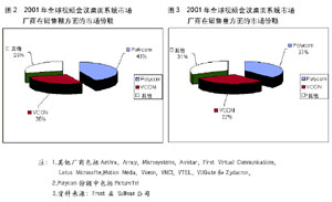 2002年年初,在IDC預(yù)測(cè)的本年度IT業(yè)界熱點(diǎn)技術(shù)中,視頻會(huì)議技術(shù)位居前列。而根據(jù)通信專業(yè)領(lǐng)域著名獨(dú)立研究機(jī)構(gòu)Wainhouse 的一份調(diào)查報(bào)告,2001年全球視頻通信領(lǐng)域僅設(shè)備市場(chǎng),容量就達(dá)到近6億美元,占整個(gè)視頻會(huì)議市場(chǎng)52%的份額。Wainhouse還指出,2002年是視頻會(huì)議領(lǐng)域發(fā)展極為迅猛的一年,估計(jì)到2006年,整個(gè)視頻會(huì)議市場(chǎng)的市場(chǎng)容量將達(dá)到29億美元,比2001年增長(zhǎng)20.4%。